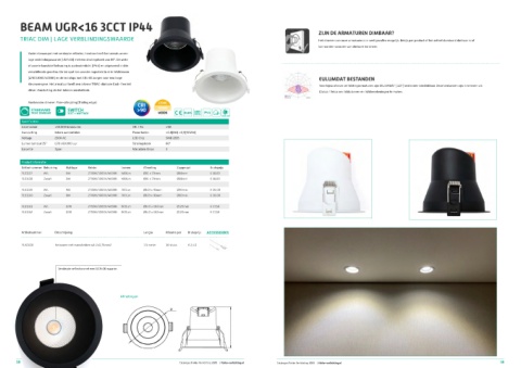 lage verblindingswaarde (UGR<16) met een stralingshoek van 60°. De witte